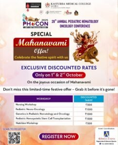 Get ready to experience more than just a conference — this is a celebration of knowledge, collaboration, and the unwavering spirit of pediatric hematology and oncology. Nestled between lush landscapes and the calming Arabian Sea, Manipal invites you to dive deep into discussions, discoveries, and new directions in child health.